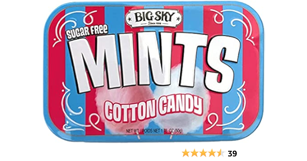 Amazon Com Big Sky Sugar Free Mint Candy Cotton Candy Flavor 50g Tin 6 Count Display Tray Grocery Gourmet Food
